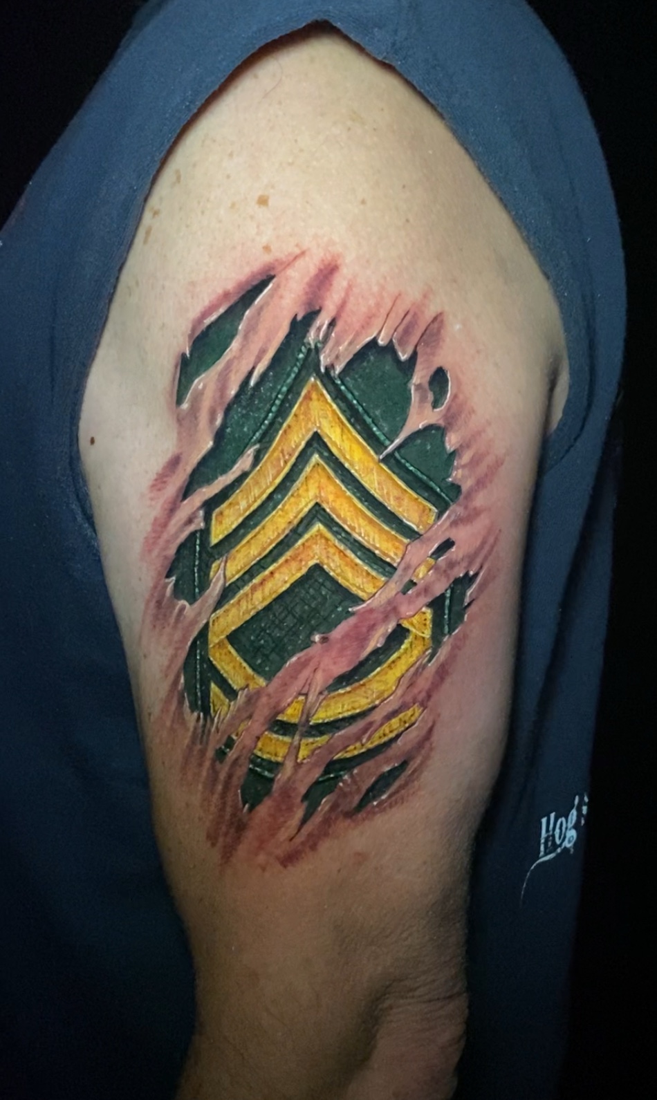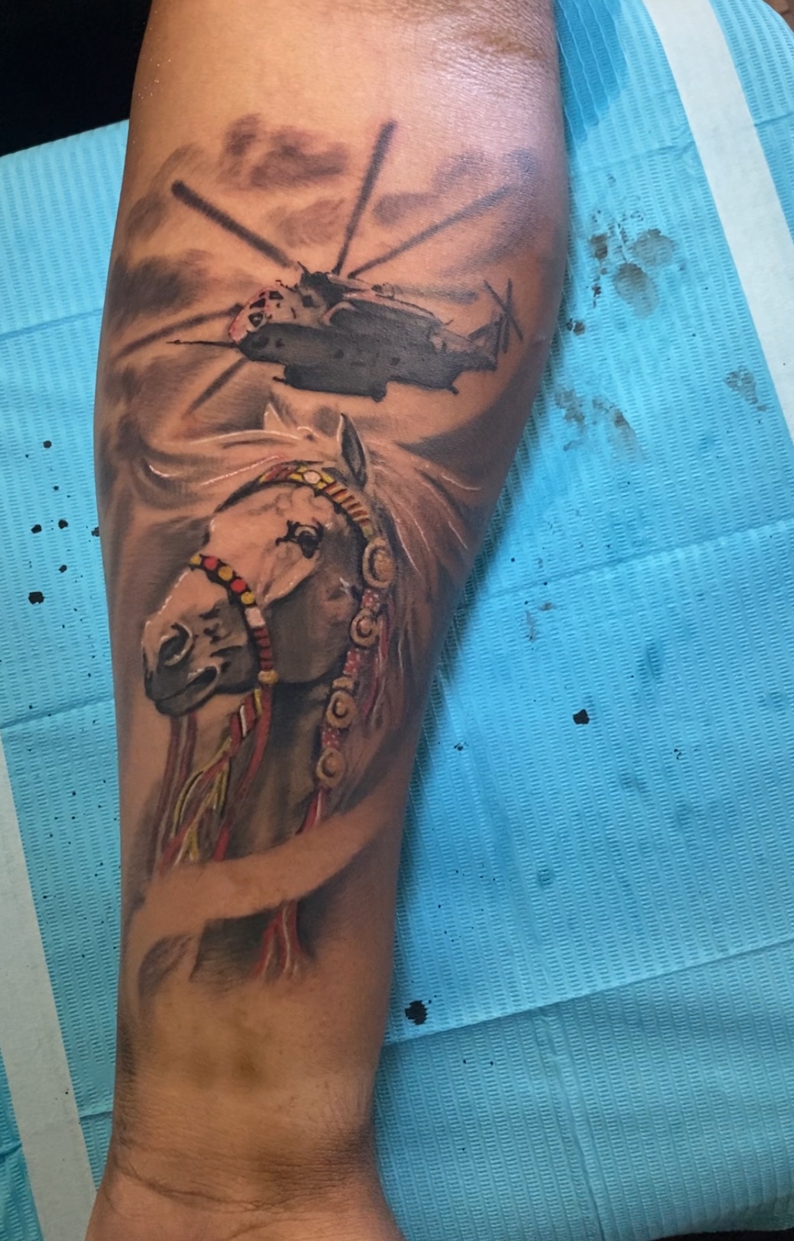 An artist from my shop, Darren, and I co-starred in the Military edition of the Marked TV series. In it, we learn about and tattoo the stories of veterans and active duty military, competing with each other in each episode to see whose tattoo design gets picked by the service member for putting on their skin for life. You can learn about the show in this YouTube video.
