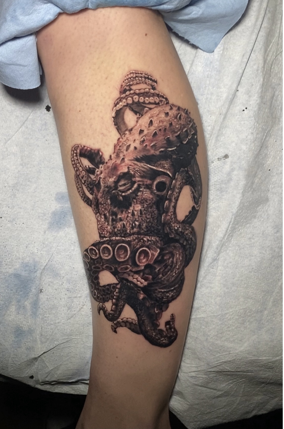 Your tattoo will be bandaged twice, starting at the shop. I give you a verbal rundown on care and assure you not to hesitate to reach out with any and all concerns. And, you can come by if you want to get the first bandage changed out. Some clients prefer this if it’s in a hard-to-reach spot or they simply aren’t comfortable with the application.